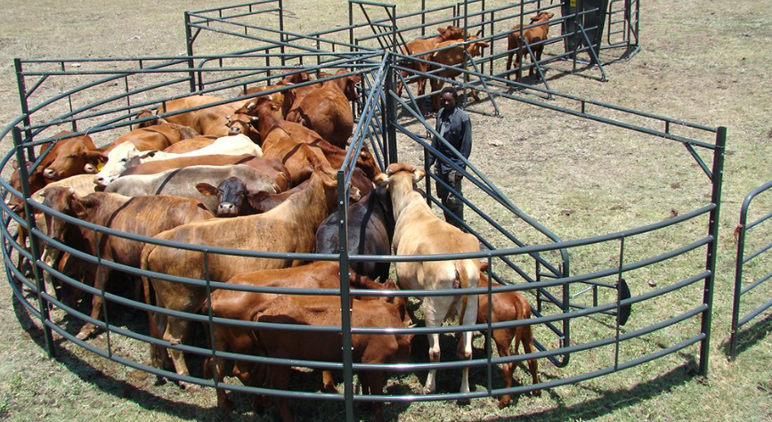 Image 1: Cattle being organized and controlled in a holding pen with a shoot at the end (Image Courtesy of Creamer Media)